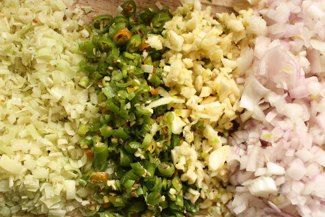 It was tempting to use a food processor but I remembered the sambal for its texture as well, like the crunchy bits of lemongrass, which is also one of the things that make it quite unique.